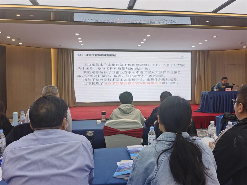 为贯彻落实山东省水利厅《关于发布山东省水利水电工程预算定额及设计概(估)算编制办法的通知》(鲁宝威在线字【2022】69号)文件,2023年4月21日投标部组织业务骨干参加由山东省水利水电勘测设计协会主办、山东省水利水电勘测设计协会施工造价专业委员会、广联达科技股份有限公司山东分公司协办的《山东省水利水电工程设计概(估)算编制办法及预算定额》宣贯培训班。